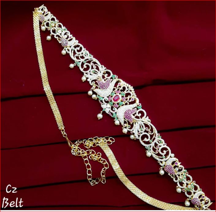 Empress Plume Waist Belt channels the regal beauty of traditional Indian design. Adorned with sparkling CZ stones and vibrant gem accents, its twin peacock motif and bold central gem evoke opulence and elegance. A perfect finishing touch for bridal wear or festive ensembles, this belt blends heritage with high glamour.