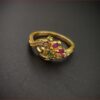 The Nooré Regal Ring is a celebration of timeless luxury. Its oval-cut rubies and sparkling clear stones radiate elegance, while the subtle green emerald accents add depth and color. Set on a graceful gold band, this piece is perfect for regal occasions and festive finesse.