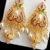 Featuring a vibrant blend of green and pink gemstones with delicate pearl-like drops, they’re the perfect statement piece for festivals, weddings, and ceremonial attire.
