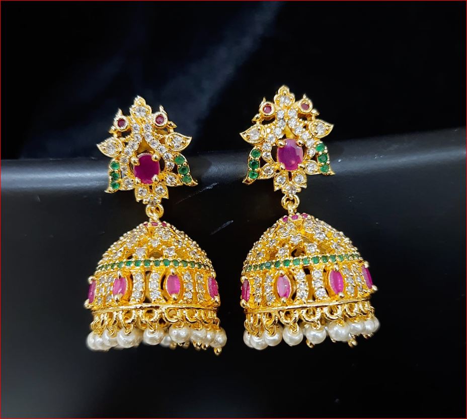 The Zehra Bloom Jhumkas blend tradition with modern flair, featuring intricate floral detailing and a radiant jhumka silhouette.